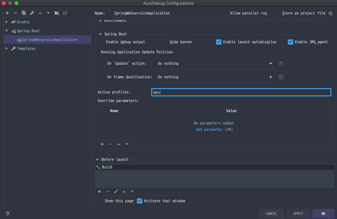 - Active profiles 에서 원하는 profile 명을 입력 후 실행